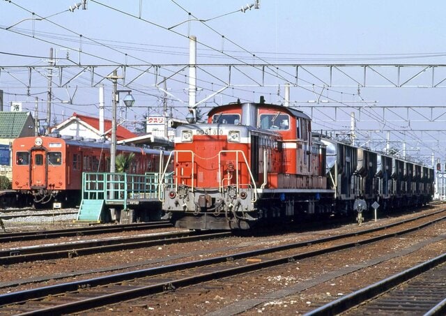 高麗川駅に停車中のDD51 810号機。まだ八高線は30系気動車だったが、川越線は架線が張られ電化されていた