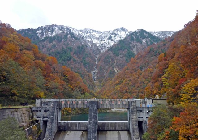 高熱隧道を抜けると上部軌道の途中駅「仙人谷」。駅から望む関西電力仙人谷ダムと北アルプスが素晴らしい