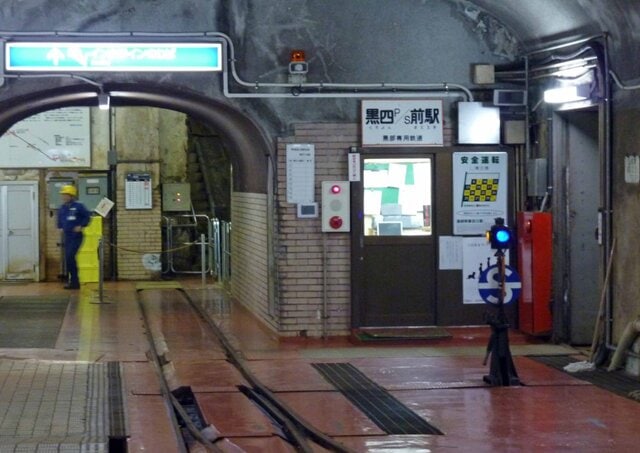 上部軌道の終点は標高869mの「黒部川第四発電所前」駅。有名な「黒四ダム」はこの発電所の発電用に作られたものであるが、ダムがあるのはこの発電所の何と約10km上流で、このダムの水を高底差545mの地下トンネルで一気に落下させて黒四発電所で発電するという大がかりな建築物である