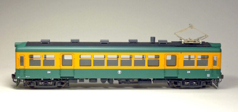 埋込型型ヘッドライトに押込型ベンチレーターで、若干都会的になった日車標準です。モハ24形24型、25型、及び同型のモハ10形12型を製品化
