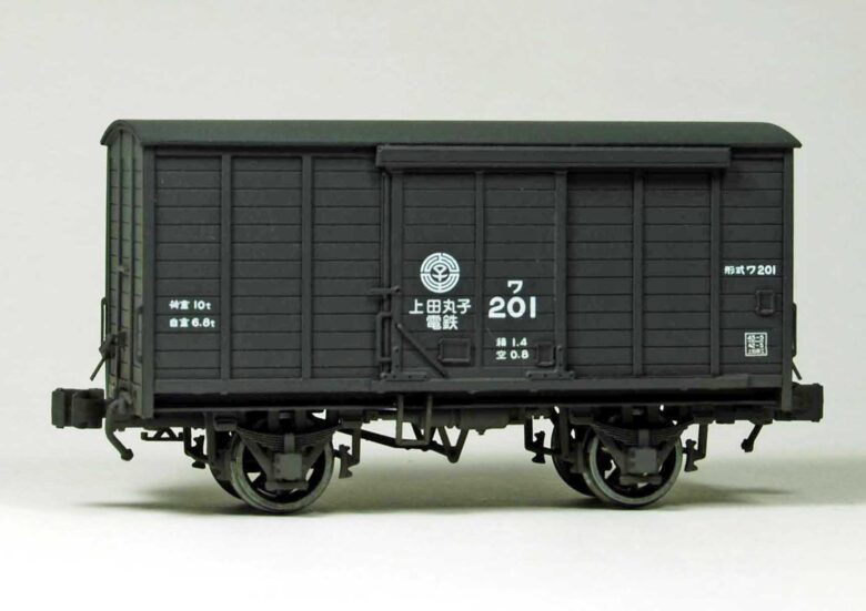 上田丸子電鉄仕様。ローカル私鉄で、電車に牽かれて走る姿はとても愛らしい