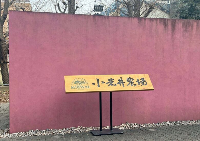 不忍通りから見えるのはこの「小岩井農場」の看板だけで、まるでこの奥に農場があるかのよう