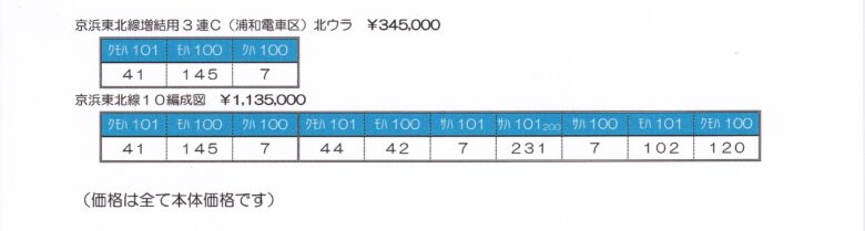 編成表の本体価格は、あくまでも予価です。原材料の値上げ等により販売価格が変更となる場合もありますので、予めご了承下さい。