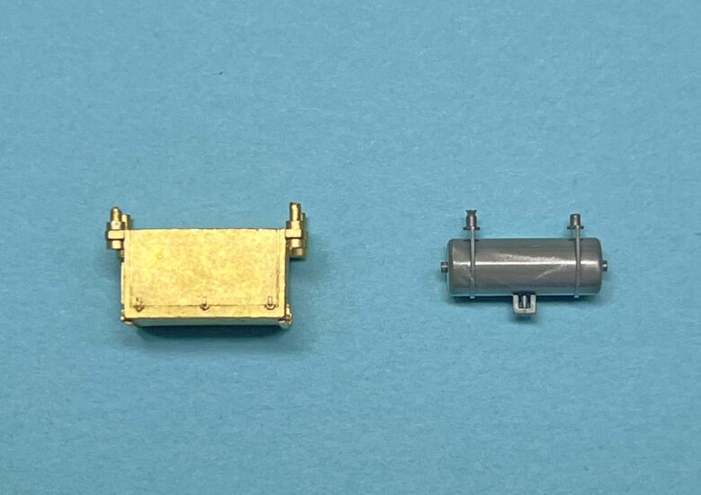 ロストワックス製の電動空気圧縮器とプラ製のエアータンク。何とも贅沢なCP