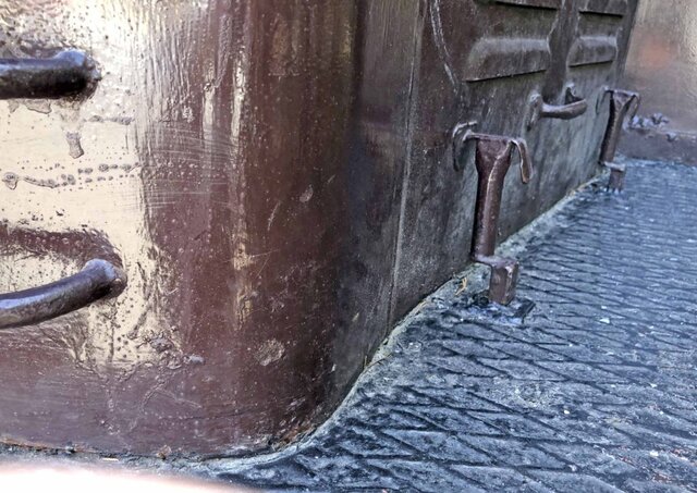 ラジエターカバーとボンネットのつなぎ部分。カバーはレールに水平であるが、ボンネット部分には、テーパーが付いているので、折れ曲がっている。ブサイクになるが、このまま忠実に再現