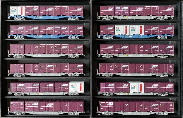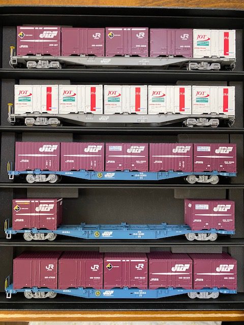 こちらは、JOTコンテナを集めて上手く載せていますね。コキ106再生産のオーダーを頂きました