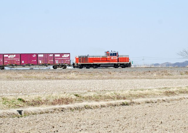 2019年3月、石巻線小牛田~上涌谷駅間を走行する後期型のDE10 3507号機