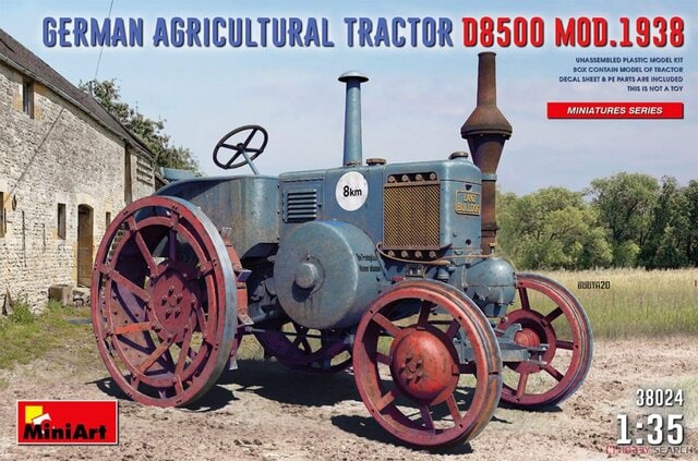 キットはミニアート社の1/35スケール「ドイツ 農業用トラクターD8500 1938年製」で、市場価格は¥4,000~¥5,000