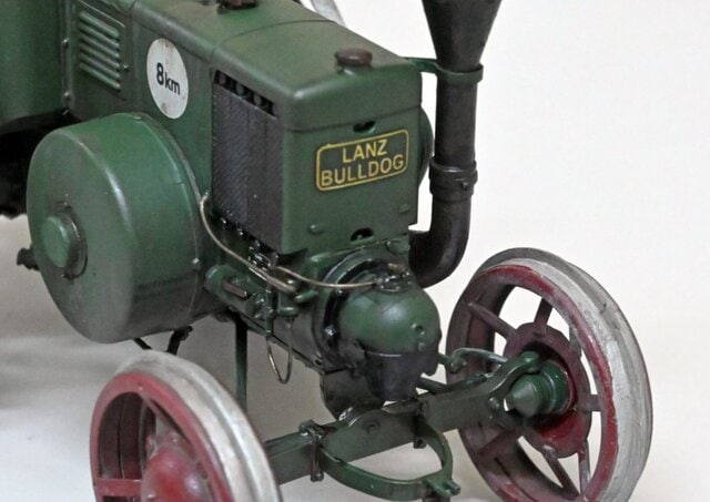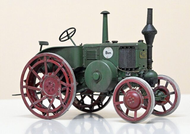 ブルドッグのエンジンは単一シリンダーのホットバルブエンジンでサイドにラジエター装備。構造がシンプルなためメンテナンスが楽で、さらに廃油などでも走る事が出来た為、ヨーロッパ中に販売された