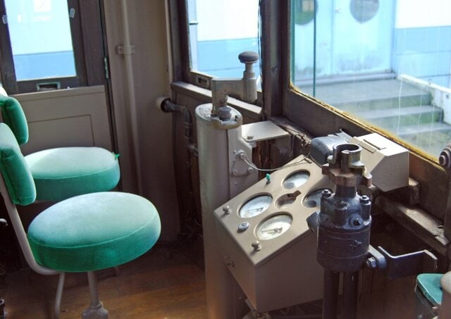 18m車ながら運転席はセンターで、椅子は置くだけの普通の丸椅子