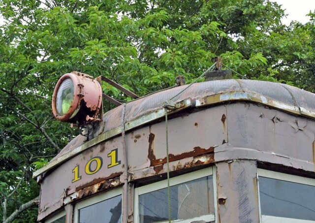 解体前は笠上黒生(かさがみくろはえ)駅構内で物置として使用されていたデハ100形101。何故かこの写真しか残ってなく、撮影した筈の台車等の写真が見つからない。デハ101は2009年9月に解体されてしまった 2003年(平成15年)7月