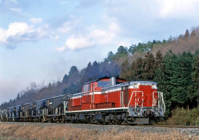 明覚~越生(おごせ)間でセメント貨物を牽引するDD51 888 1998年(平成10年)12月