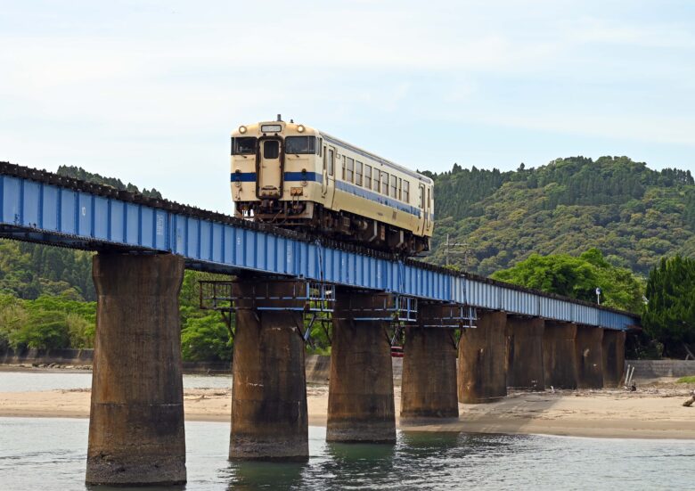 日南線を下って行き油津の先、大堂津(おおどうつ)駅と南郷駅との中間付近に、細田川の河口に掛かる「細田川橋梁」がある