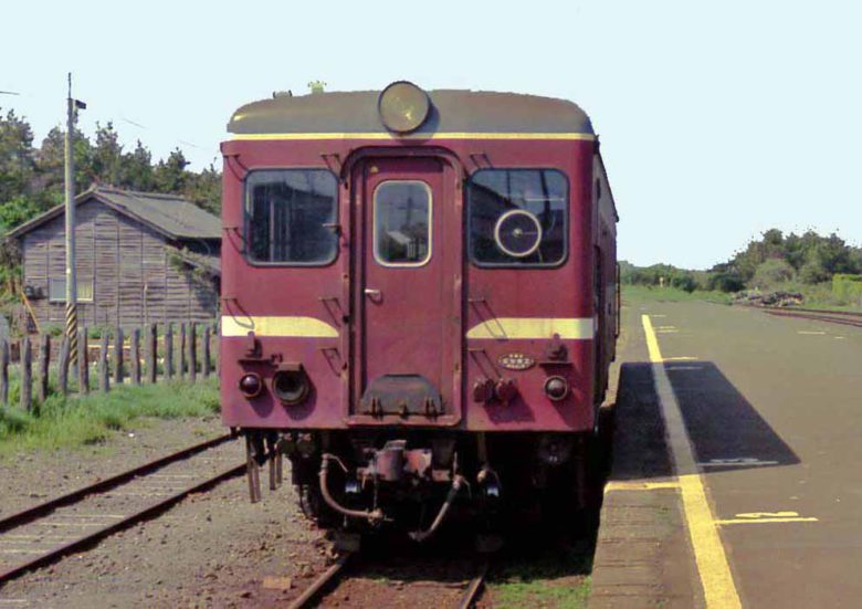 茨城交通では羽幌炭礦鉄道の塗装をそのまま襲名し、番号もそのままのキハ222として使用していた。阿字ヶ浦駅で出発を待つキハ22形。撮影は1983年(昭和58年)と思われるが、車号は不明