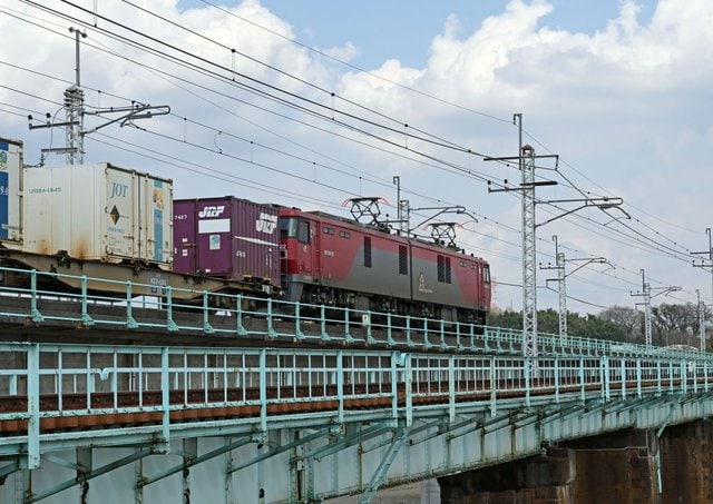 EH500 7号機牽引の札幌ターミナル発墨田川駅行きコンテナ列車。鬼怒川橋梁の東京寄りの土手からは、午後が順光となる
