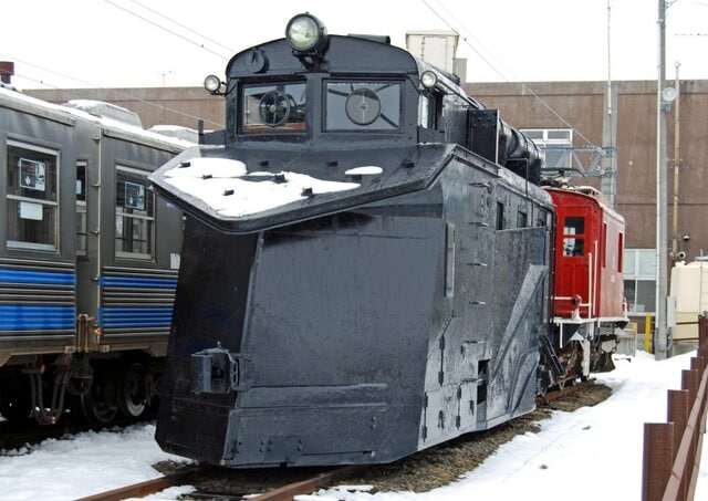 弘南線黒石駅構内にキ104と共に留置中のED333 1923年のウェスチングハウス社製で、前身は西武鉄道13号機(旧武蔵野鉄道デキカ13)。1961年に弘南線へ入線している