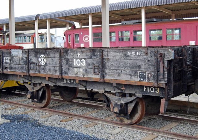 ト10形101~103は、さらに古く1907年(明治40年)製で、エアーブレーキ装置が付いていない。くりでんミュージアムには、102と103が残されている 2010年9月