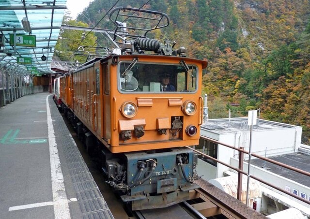 黒部峡谷鉄道の終点・欅平に到着した工事関係者専用列車を牽引するEH級電気機関車。欅平には黒部川第三発電所がある