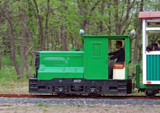 まむろ川温泉梅里苑の森に新設されたエンドレスコースは、ヘッドマークと派手な客車がなければ、かつての森林鉄道を彷彿とさせる