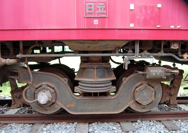 中間台車はTR103。空気ばねの圧力を調整して両サイドの動輪軸重を4段階に調整することが出来た