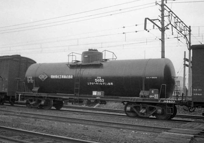 関東電気工業のシクロヘキシルアミン専用貨車 タキ5653(形式タキ5650)