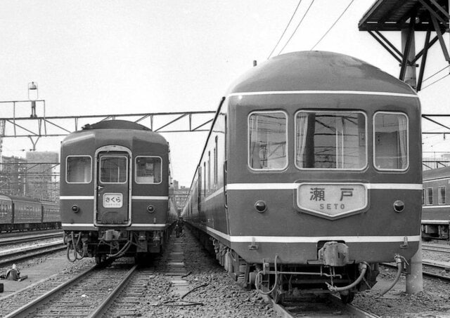 品川客車区に並ぶ20系寝台特急「瀬戸」と14系寝台特急「さくら」