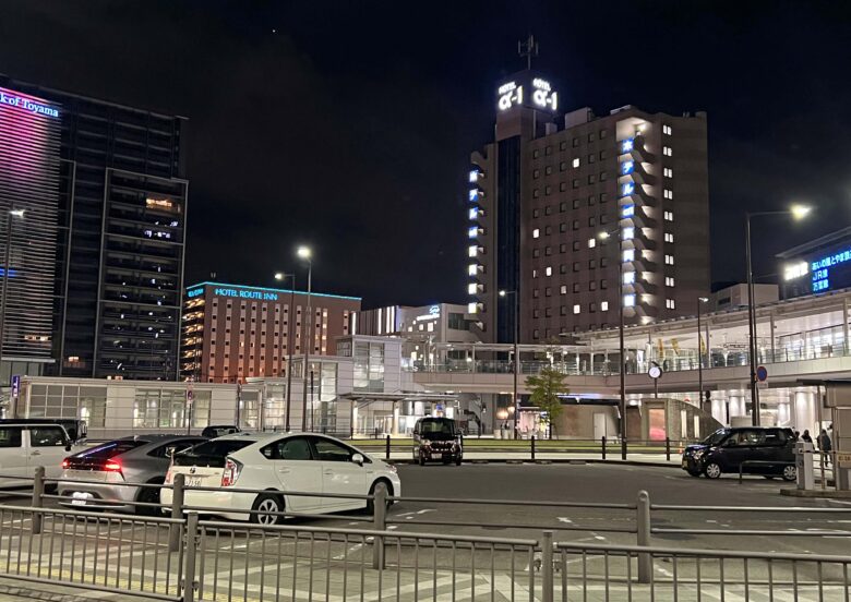 駅前はビジネスホテル各社が並んでいる