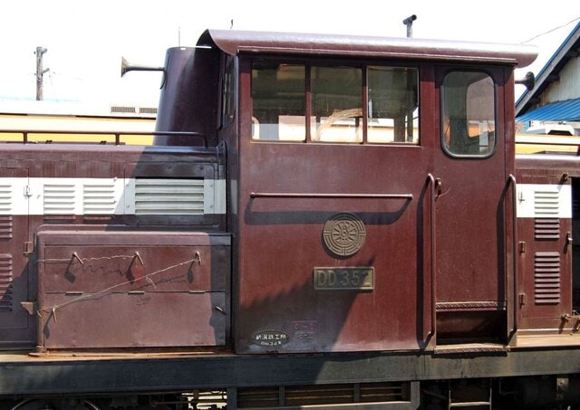 津軽鉄道といえば、ストーブ列車を牽引するこのDD35。35tのロッド式機関車である
