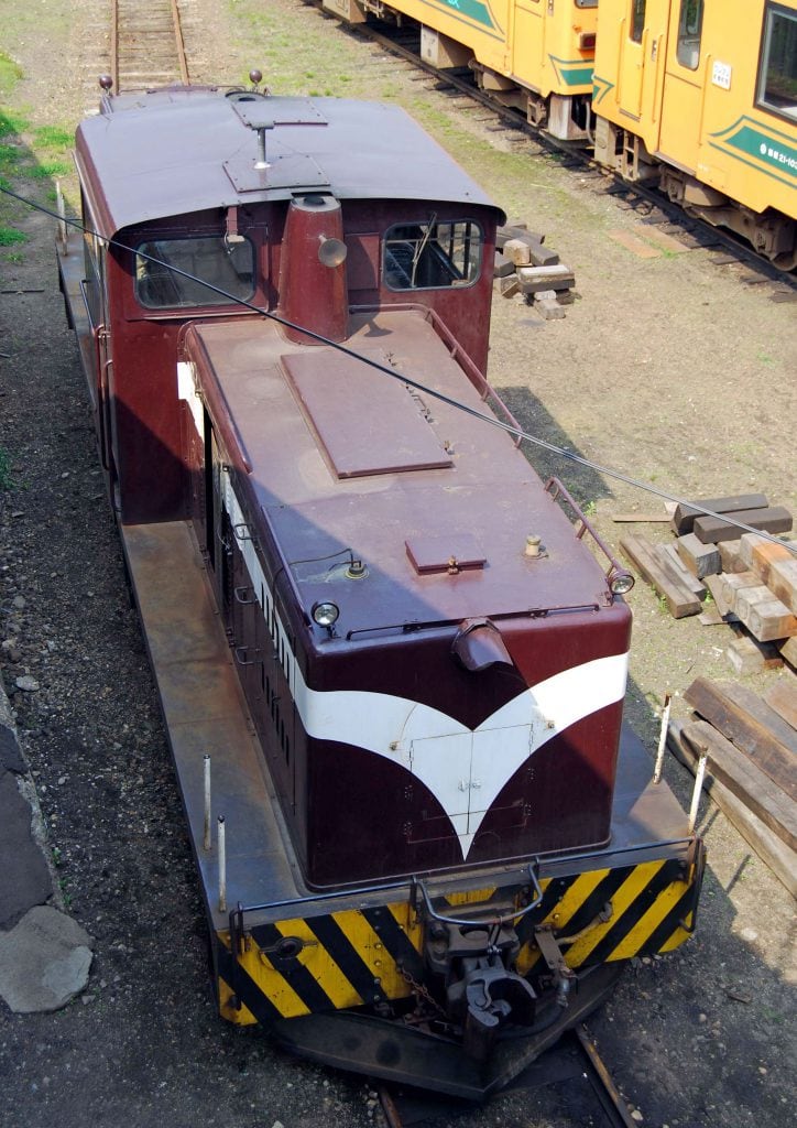 機関庫の中にはDD35 1号機。1号機のエキゾーストパイプはキャブ中央になく、キャブの脇(写真では左端)を這い上がっているので、前面は三枚窓である 2007年5月