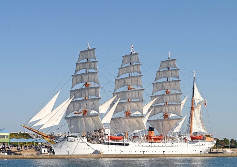 海王丸が進水したのは1930年(昭和5年)。戦争中は帆装を撤去して石炭輸送、戦後は復員者輸送に従事し、美しい帆装が再び見られるようになったのは1955年(昭和30年)で、1989年(平成元年)に現役引退するまでの59年間で総航程は106万海里(196万Km)に及んだ