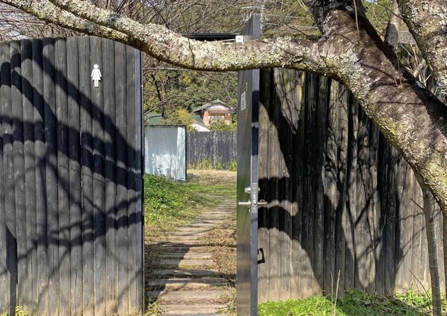 この無人駅に黒い板塀で囲まれた一画があり、ドアが開いていたので覗いてみると、何と中央にカーテンで囲まれた便器があるではないか。確かに塀の上の方に「女性」のピクトグラム。そう言えば、一時マスコミで騒がれていたな~と思い出しつつ、失礼ながら写真を1枚。もちろんドアにカギはかかるのだが、気になる方はカーテンを閉めてご使用下さいという趣旨らしい。使用できないので何とも言えないのだが、落ち着いて用がたせるのだろうか