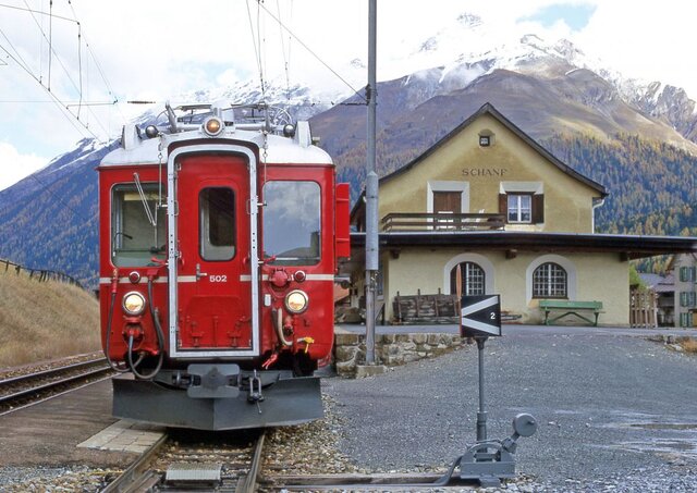 スイス・メーターゲージの代表格、レーティッシュ鉄道。そのレーティッシュ鉄道のエンガディン線は、エンガディン地方の中心地サン・モリッツからシュクール・タラシュプまでの谷間を走っていて、小さいながらも美しい駅舎が続く