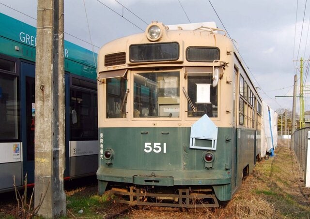 1955年(昭和30年)製の550形551号車は、江波車庫の隅に廃車体の様になっていたが、2013年4月解体