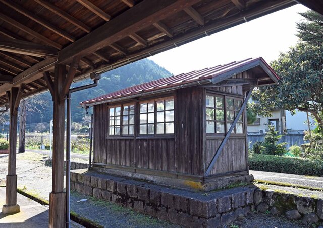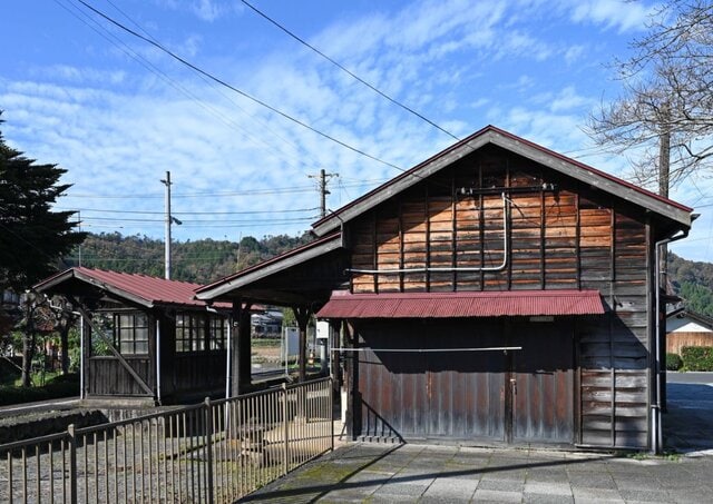 9駅ある内の6駅の本屋とホームが、国の登録有形文化財に指定されている若桜鉄道の中でも、唯一異質な雰囲気の駅が安部駅である。建物の切妻部分に正面があるのも珍しい